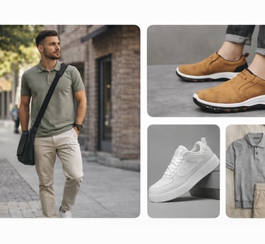Browse our selection of men’s footwear and everyday apparel, including casual shoes, sneakers, shirts, and daily outfits.
